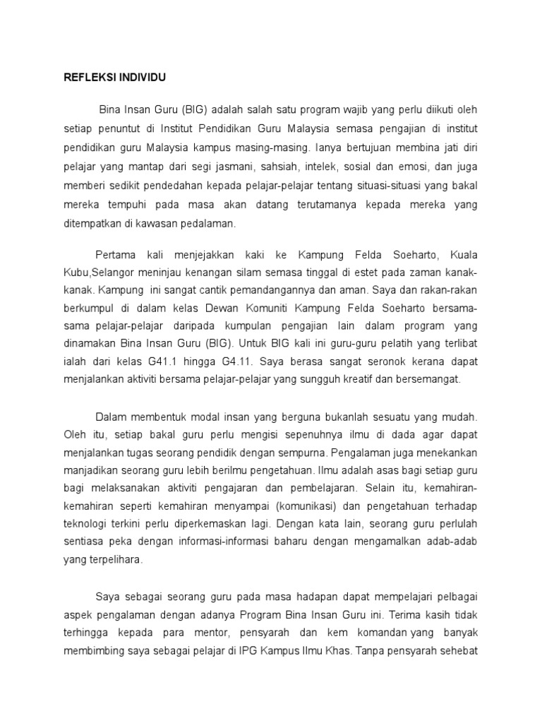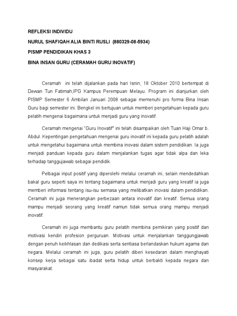 Contoh Refleksi Individu Guru Inovatif Pdf
